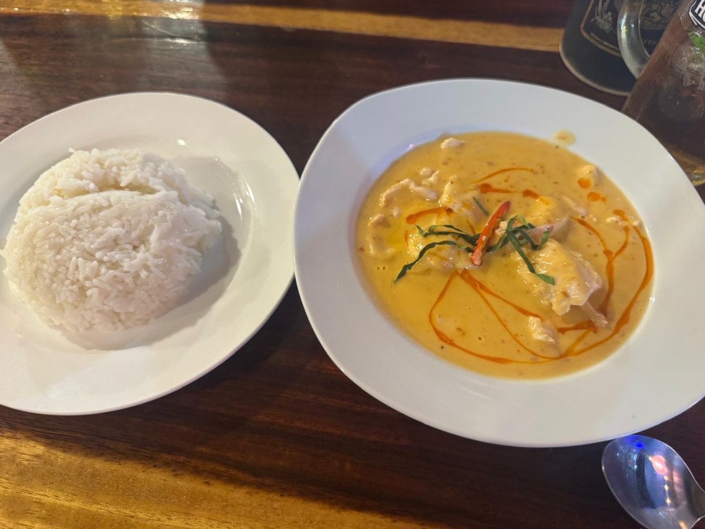 We have also discovered one of our favourite restaurants here in the village. It’s called Nanny’s Restaurant and they do amazing authentic Thai food and also western food at a cheap price. You can get a main here for as little as £1.14! We make sure to go everyday. Tasha has discovered her newfound favourite curry, Panang curry.