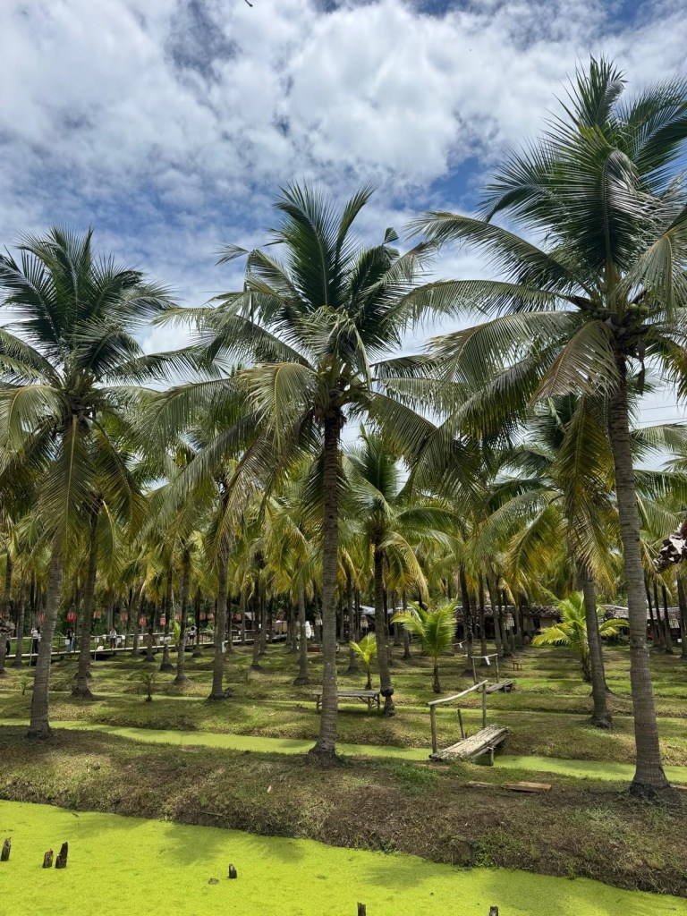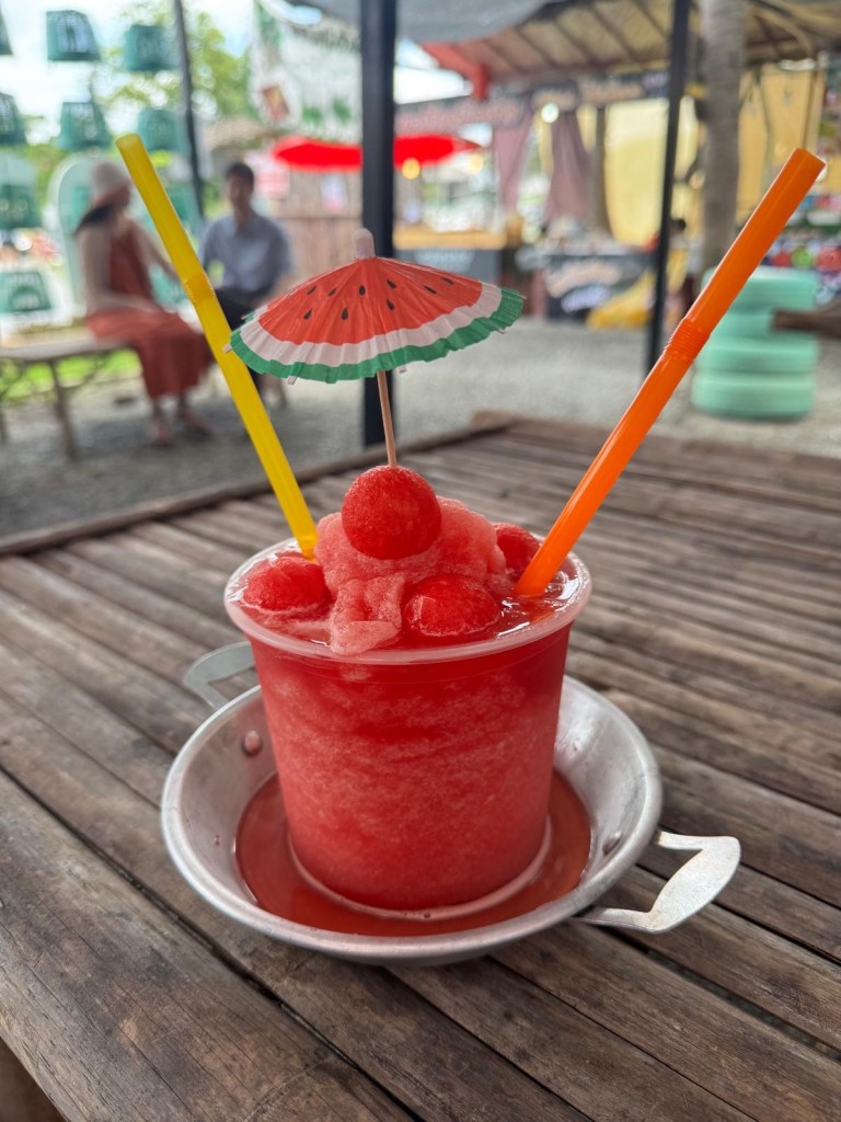 This morning we went to the coconut market. Surprising it’s based inside a coconut farm! It was very picturesque and we treated ourselves to a bucket of watermelon smoothie for 60 baht (£1.36).