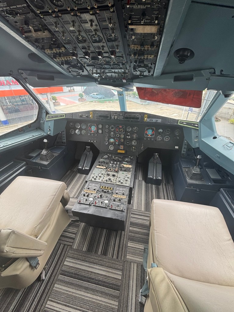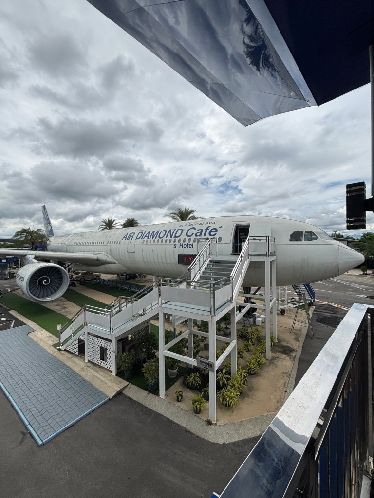We got a Bolt (Uber) to a plane cafe about 45 minutes outside of Chiang Mai, and the driver… let’s just say was the first person since leaving Heathrow we wouldn’t buy a beer for! The cafe was very cool and is inside an old original Airbus A330.