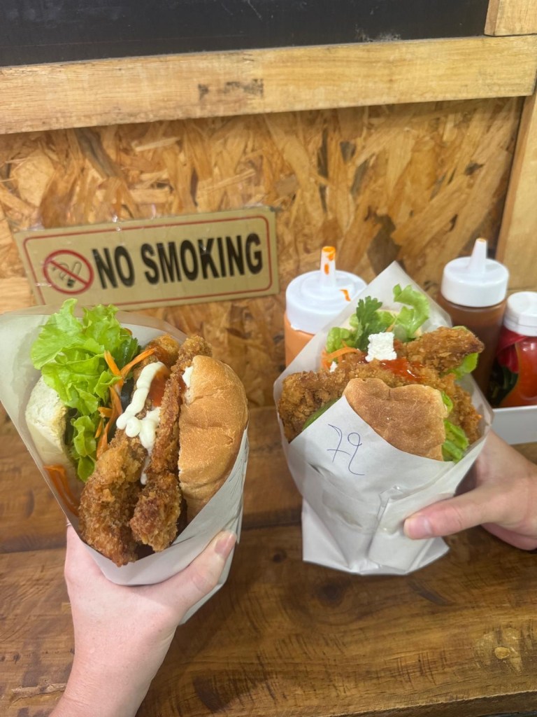 Our last day in Pai we tried the viral Vietnamese sandwich shop. These two fried chicken sandwiches only cost £4. They were massive!