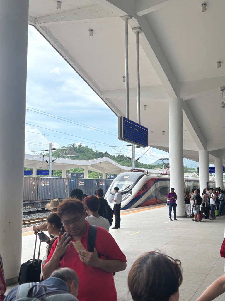 The train from Luang Prabang took less than 1 hour and was extremely nice. It was built by the Chinese and opened in 2021 and is the first high speed train in Laos. A lot of the journey is through the mountains with the longest tunnel being 9.3km long!