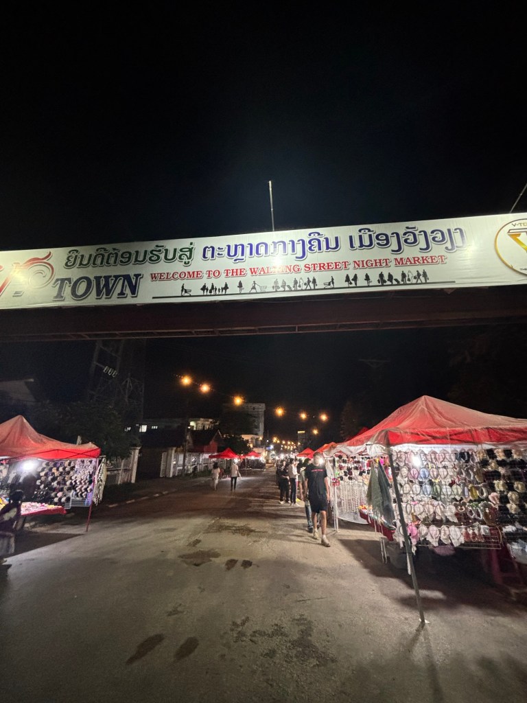 Last night we visited the Vang Vieng night market which is mainly clothes stalls with a few food stands. Its smaller than a lot we’ve seen in other places but still a nice experience.