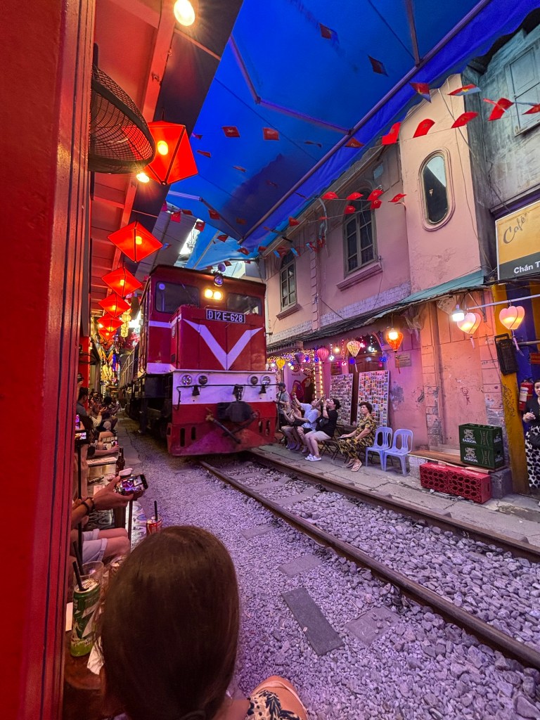 One of the most touristy things to do in Hanoi is to visit Train Street. It is lined with cafes and bars and a couple times a day a very large passenger train comes through. It nearly takes up the whole width of the street, so mind your toes!