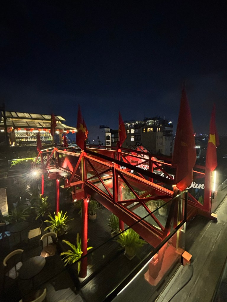 The Airbnb that we’re staying at has been lovely. It is right in the heart of the Old Quarter but tucked down an alleyway so nice and quiet at night. On the 13th floor is a rooftop bar which is connected to the hotel next door, it has a fantastic view for sunset.