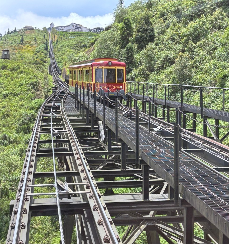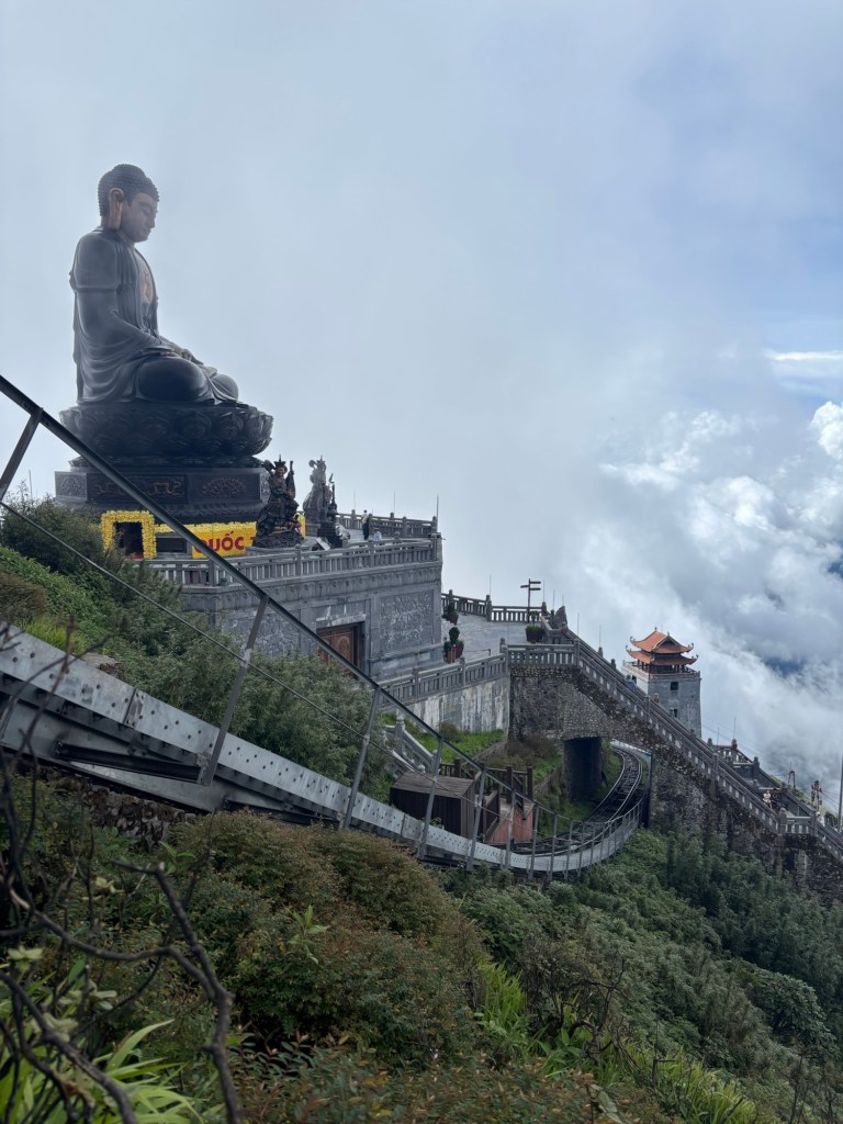 At the top there is a lot to see but you have to take it easy as there are many warning signs for altitude sickness (we did see a few people puffing into brown bags). Luckily we felt fine and got to see the summit marker that was placed on the top of Fansipan by Soviet engineers in 1985.