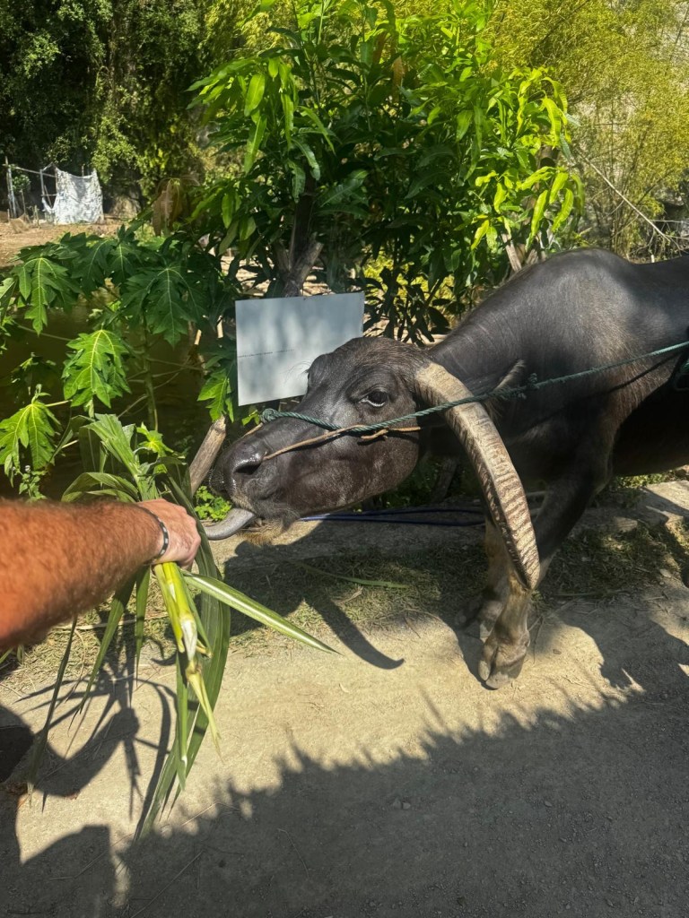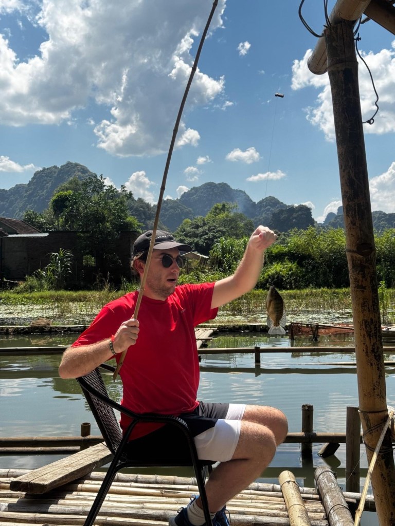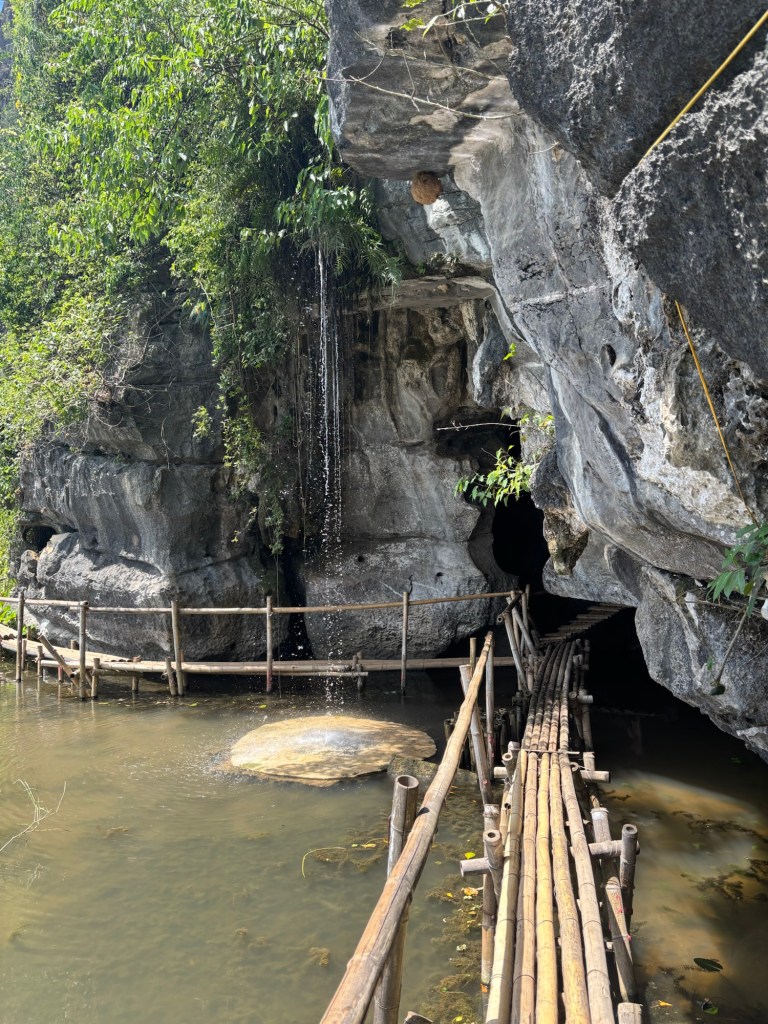 Our next outing was to the Buffalo Cave which is just outside the popular town of Tam Coc. It’s 75,000 VND to enter (£2.15) which includes a free drink, duck feed, buffalo feed, access to a natural swimming lake, fishing, and a trail around the cave… our best deal yet!