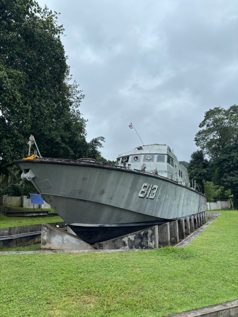 After the rain had calmed down our first stop was the Police Boat 813 Tsunami Memorial Park in Khao Lak. Police boat 813 was anchored one nautical mile off Khao Lak shore when the tsunami struck. It ended up 2km inland where it remains today.