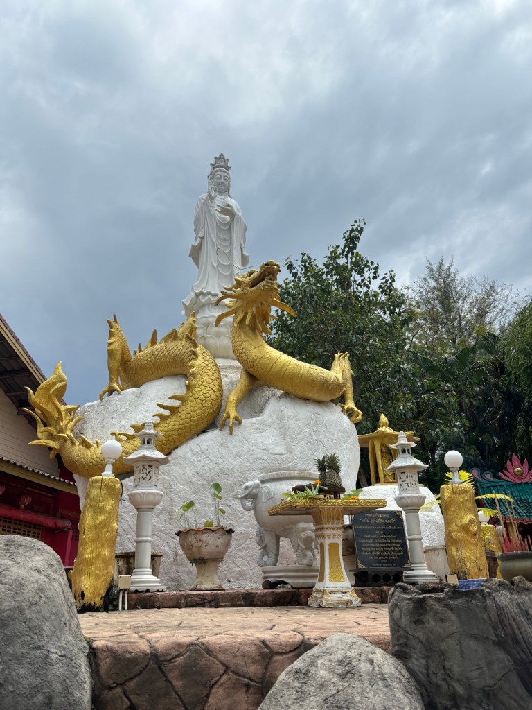 The next day walking to the beach we came across a small Chinese temple with a large golden dragon wrapped around. The statue is called Ammok Kuan Yin Pudjor and is a result of Chinese settlement.