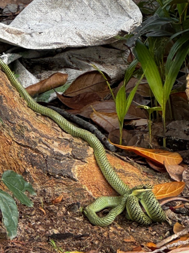 We then went back to our favourite place for a cold drink on the beach and discovered a golden tree snake hiding in the grass!