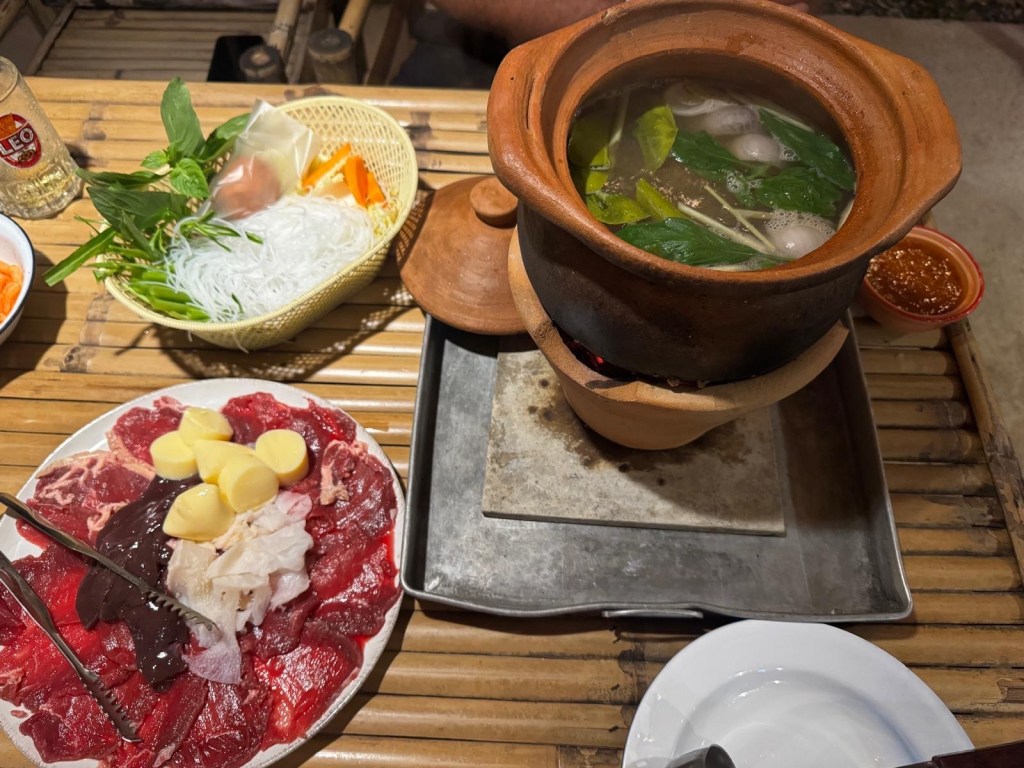 In the evening for our last meal at Yao Yai Restaurant we decided to treat ourselves to an Issan Hotpot. We decided to go for the beef for the meat and then got cooking!