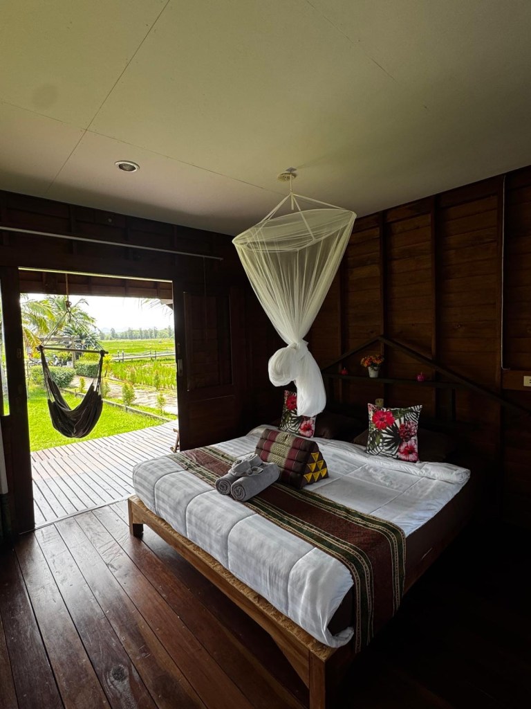 We stayed at Namm Natawn which is located in the middle of the rice fields. The pictures looked good when we booked it and we were blown away by the view when we checked in.