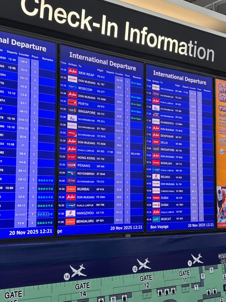 This morning we got a Bolt taxi to the airport. Once we dropped our bags off we saw that only one flight on the information board has been delayed…