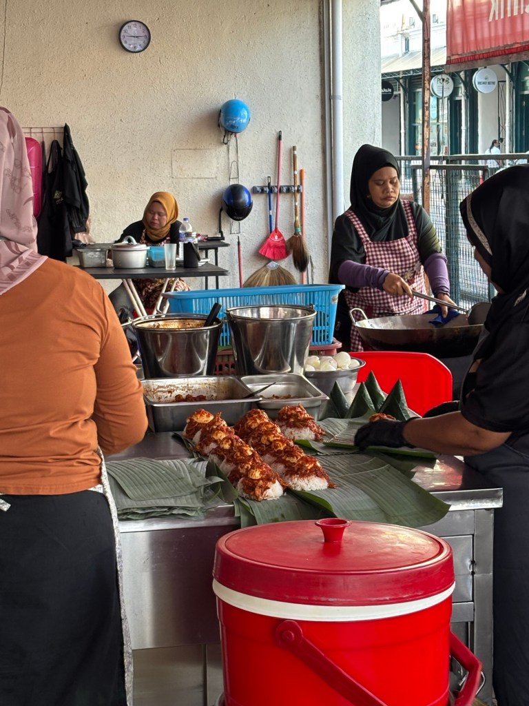 This morning we headed just across the road from us to Sri Weld Food Court and Tasha tried a dish recommended by Mark Wiens (famous foodie) at Ali Nasi Lemak Daun Pisang.