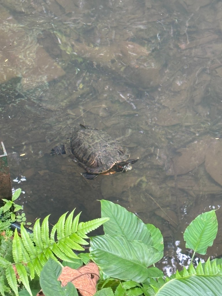 After many hours strolling around we were about to head off when we heard some splashing in a stream nearby. You know it’s a hot day when even the monkeys need to cool down!