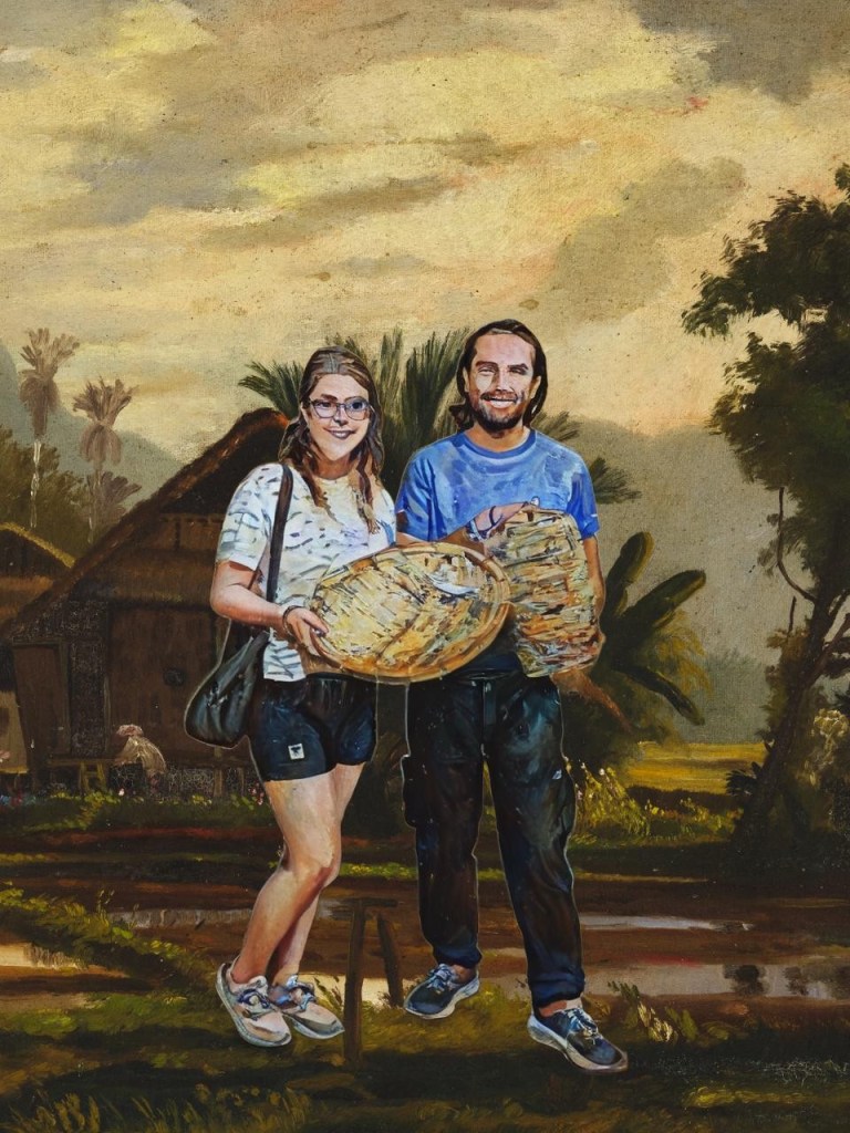 As we were walking out we spotted a photo booth so grabbed a basket each and gave a pose! We thought it would be a normal picture but it made us into art!