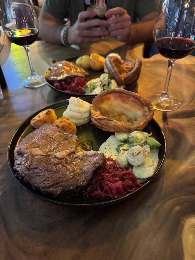 We then walked to our Christmas lunch at The Cellar. There was a lovely atmosphere in the restaurant with the Christmas music playing. The food was amazing (especially the beef!) and the red wine went down well!