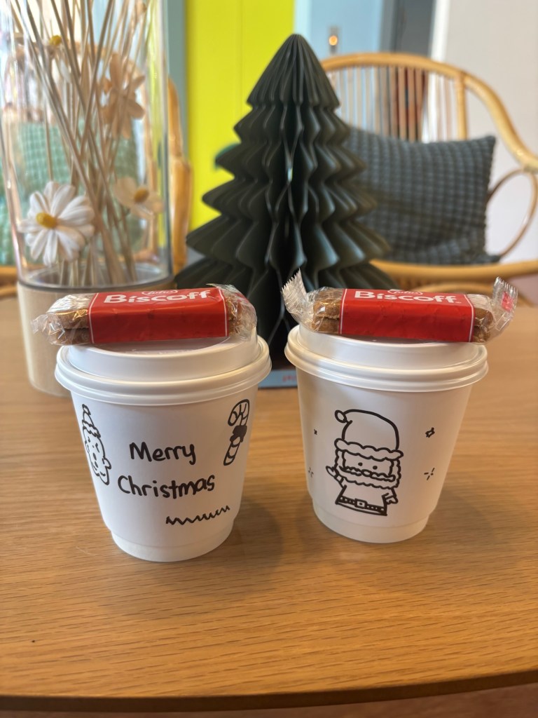 On Christmas Day we got treated to a couple of free vanilla lattes in our hostel, in custom drawn cups and Lotus biscuits!