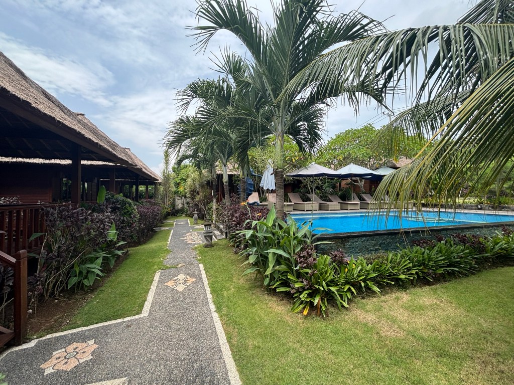 We’re staying at Lungguh Penida Hut, which is a small homestay ran by a family. It’s very remote up a mountainous track making it very quiet. There are only 5 huts and luckily for us there is nobody else here so we have the grounds and pool to ourselves!