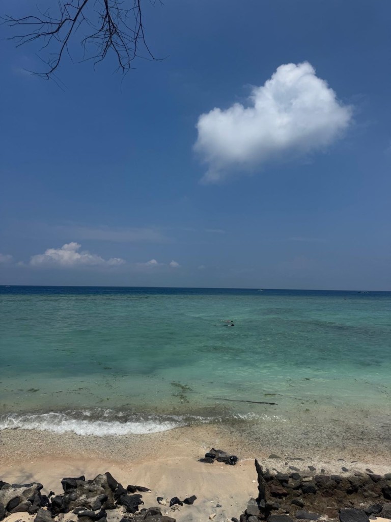 Today we gave snorkelling a go as that’s the main attraction on the Gili Islands. After Tasha having slight issues with her mask, we had a great time! We swam around the reefs on the north of the island and saw lots of fish and got to swim along side two different big green turtles! So cool!