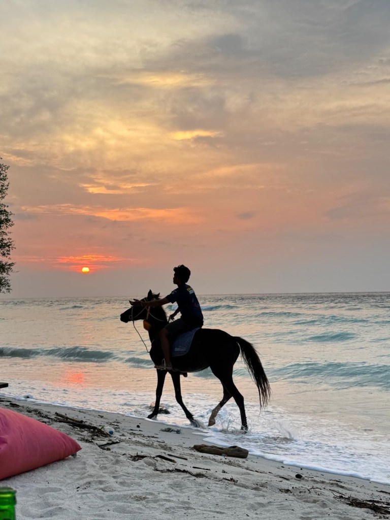 In the evening we went and watched the sunset on the west side of the island. The locals ride horses along the beach to see if anyone wants a ride, we enjoyed watching!