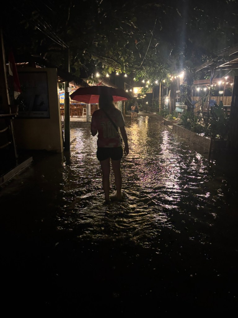 As we are visiting in rainy season it’s very quiet and there’s not many tourists at all so it was mainly just the local population of around 1,800 on the island. One of the evenings we had a massive thunderstorm, luckily the restaurant we went to lent us two umbrellas to help us wade back to our room!