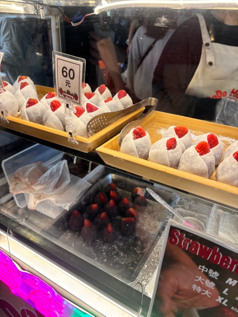 For dinner we went to Ningxia Night Market known as ‘Taipei’s stomach’ due to its dense concentration of street vendors. After squeezing through the crowds we decided to try some steamed pork dumplings, chicken thigh skewers and a strawberry daifuku. It was all delicious!