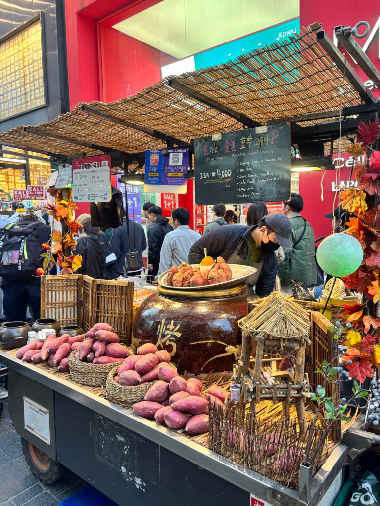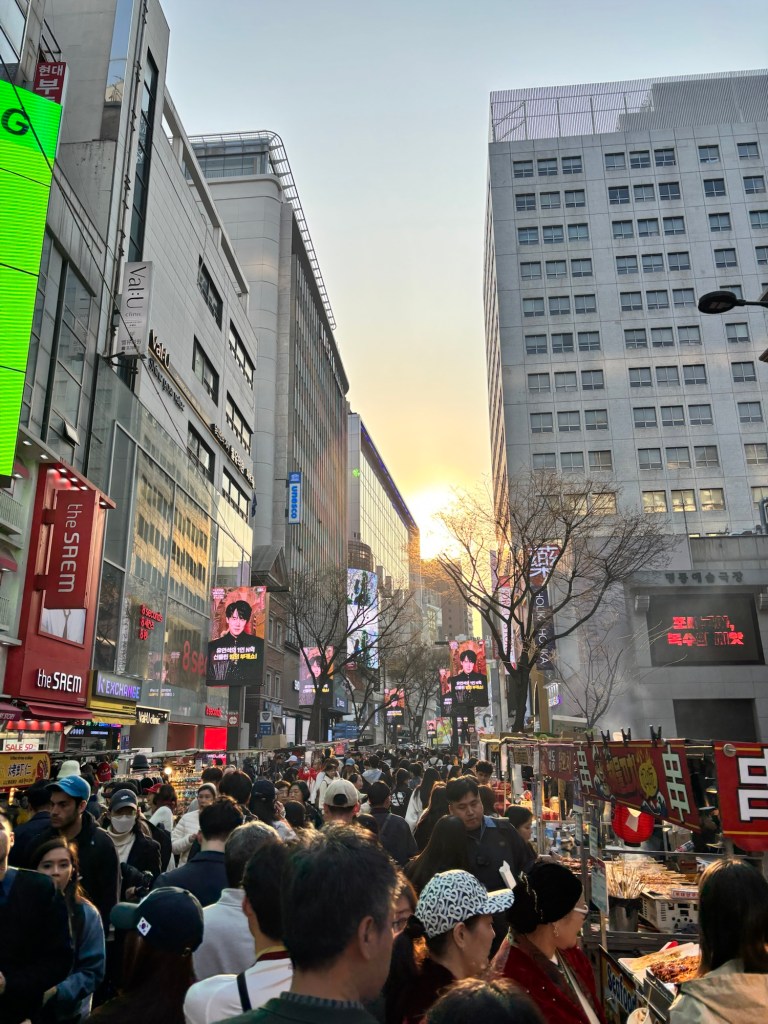In the evening we went to Myeongdong night market which is one of the most popular markets in the city with over 150 stalls selling everything from grilled lobster to Tanghulu (sugar coated fruit skewers). It was fun to walk around if not a little too crowded!