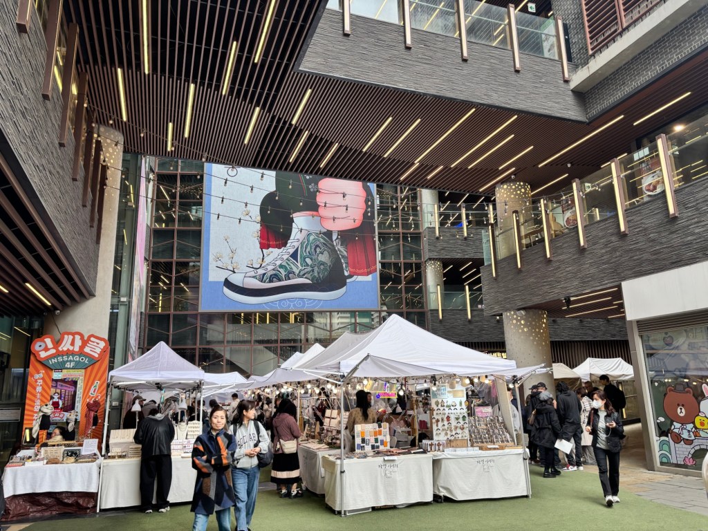 Nearby we went to check out Insadong Cultural Street which is home to lots of traditional teahouses, antique shops and unique craft stores. A lot of the shop signs use Hangul (Korean Script) even global brands including Starbucks. The area has over 100 galleries ranging from fine arts to modern sculptures.