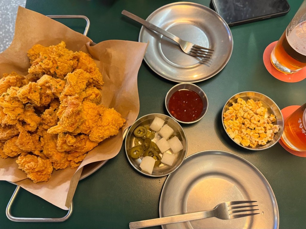 In the evening we tried Chicken and Beer (Chimaek) from a popular chain called Daily Beer. We luckily only ordered one portion of chicken because when it came we were blown away by the portion size!