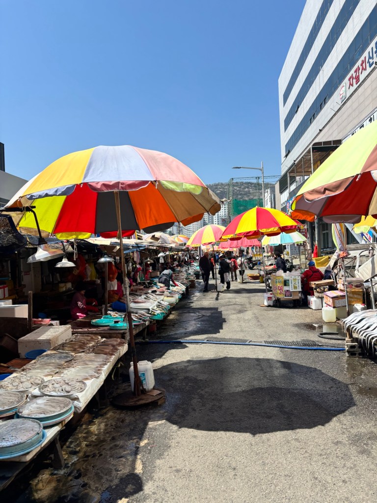 On our first day in Busan we started by checking out South Korea’s largest fish market called Jagalchi Market. On the ground floor is where you can buy all kinds of live fish, lots of different clams and crabs. Then you can have it cooked in one of the many restaurants straight away on the second floor.