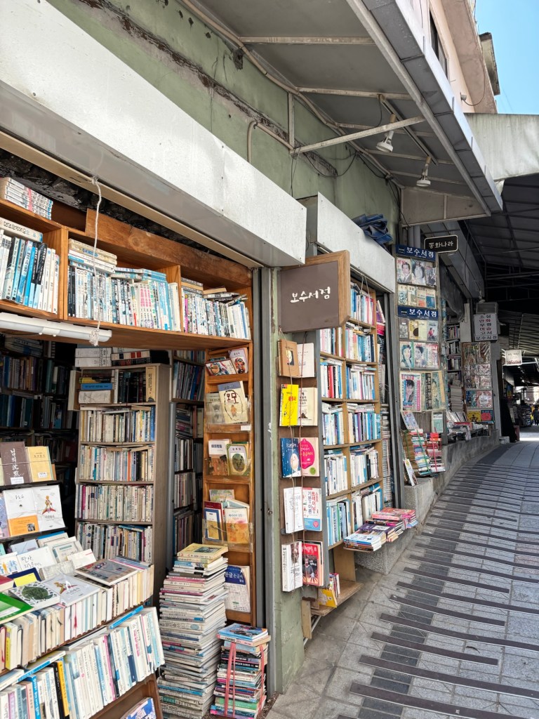 Nearby we went to check out Bosu Book Street. It originated during the Korean War when a refugee couple began selling salvaged books on the street. At its peak there was over 70 bookstores and still today there’s around 40 still operating.
