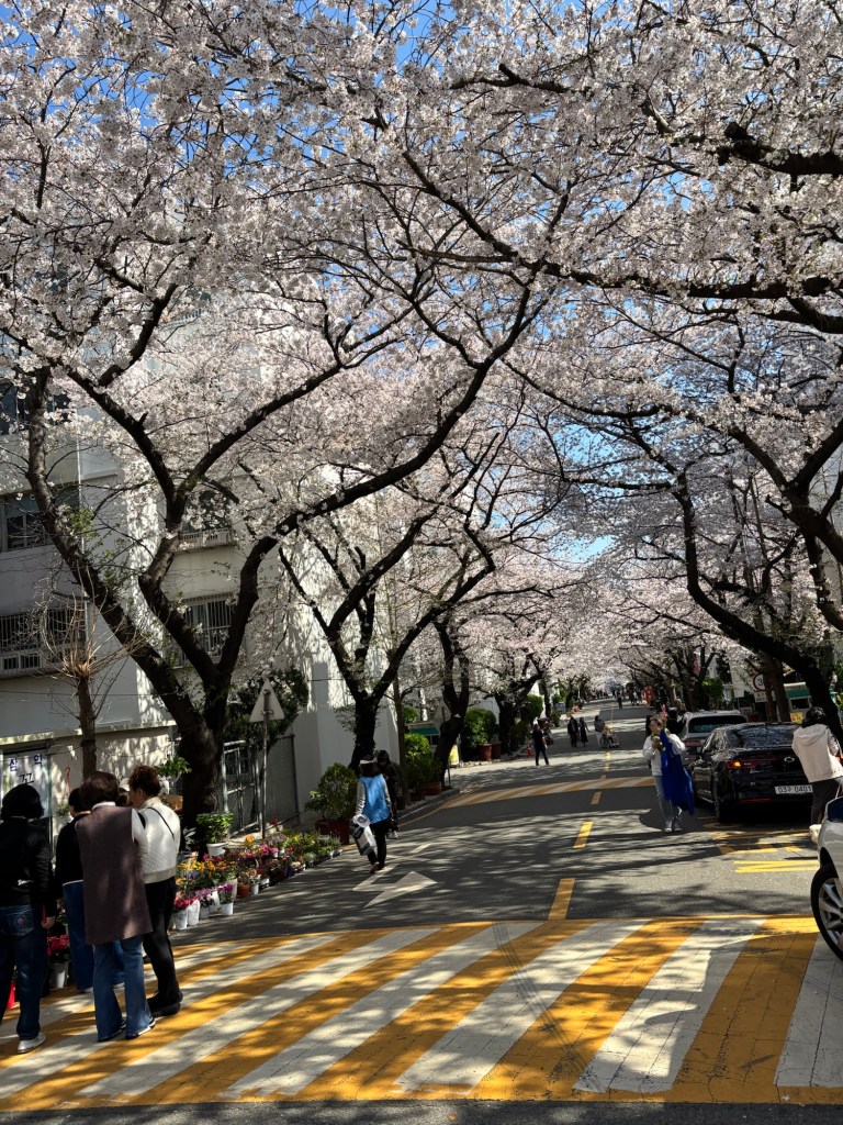 In the afternoon we went to a famous residential street where you can see some of the best cherry blossom trees in the city. We hadn’t planned to be in South Korea at the exact right time to see this so we were very lucky!