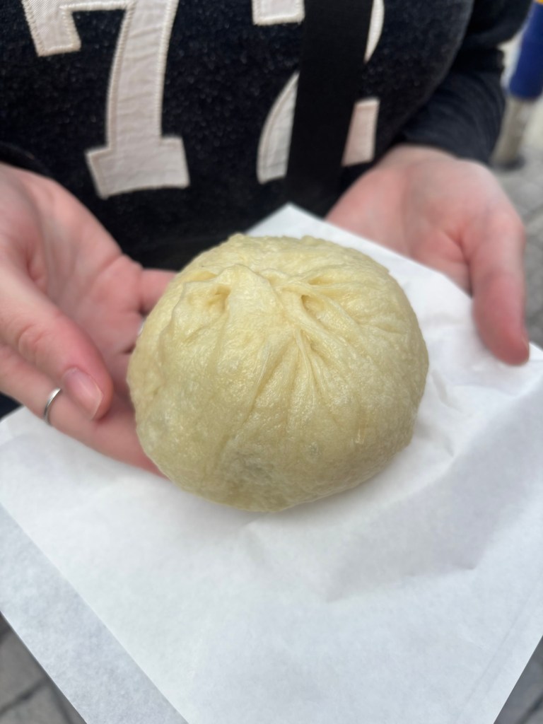 The next day for breakfast Tasha tried a Korean King Dumpling from a local store. They’re known for their soft, fluffy wrapper and they’re substantial size!
