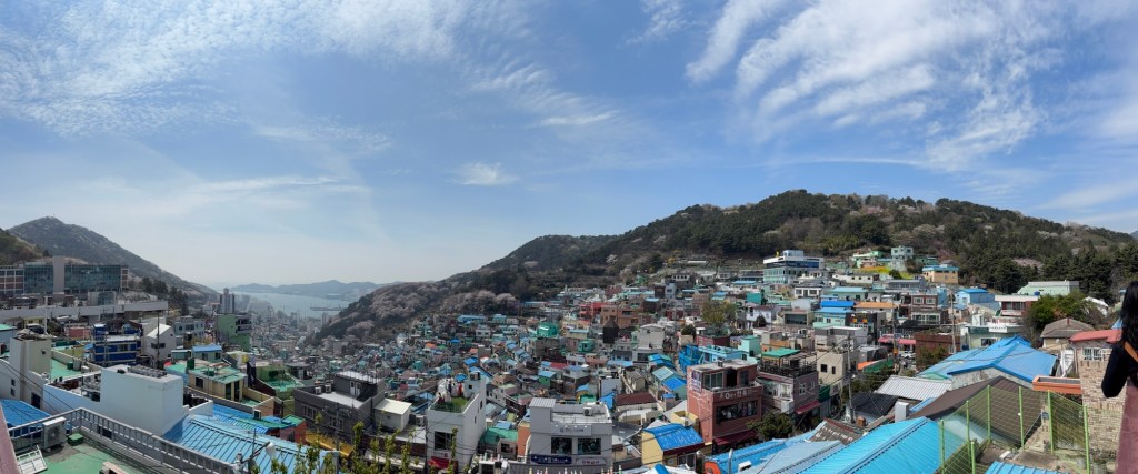 Fuelled for the day we caught a bus to Gamcheon Culture Village. It was originally a settlement for refugees during the Korean War and is now a major tourist attraction.