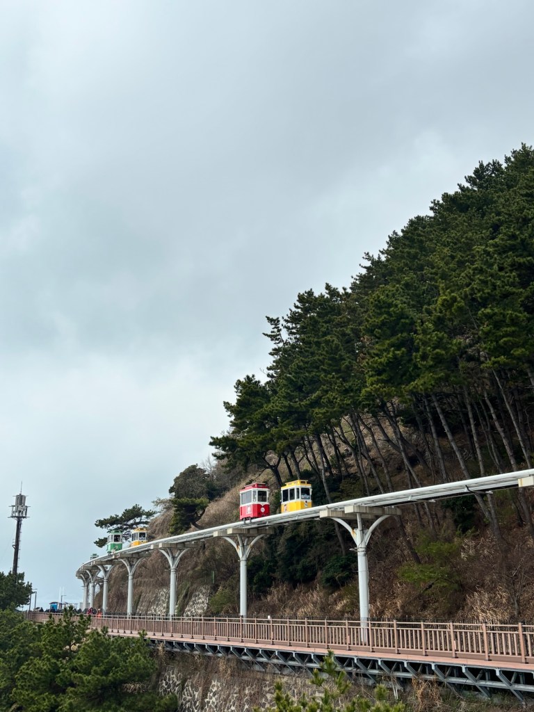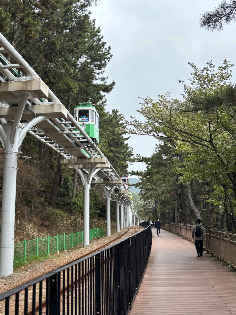 Above the train track is another elevated track for the Haeundae Sky Capsule. It’s a bit too slow for us as it only travels at 4km/h and takes 30 minutes to travel just under half the parks length.