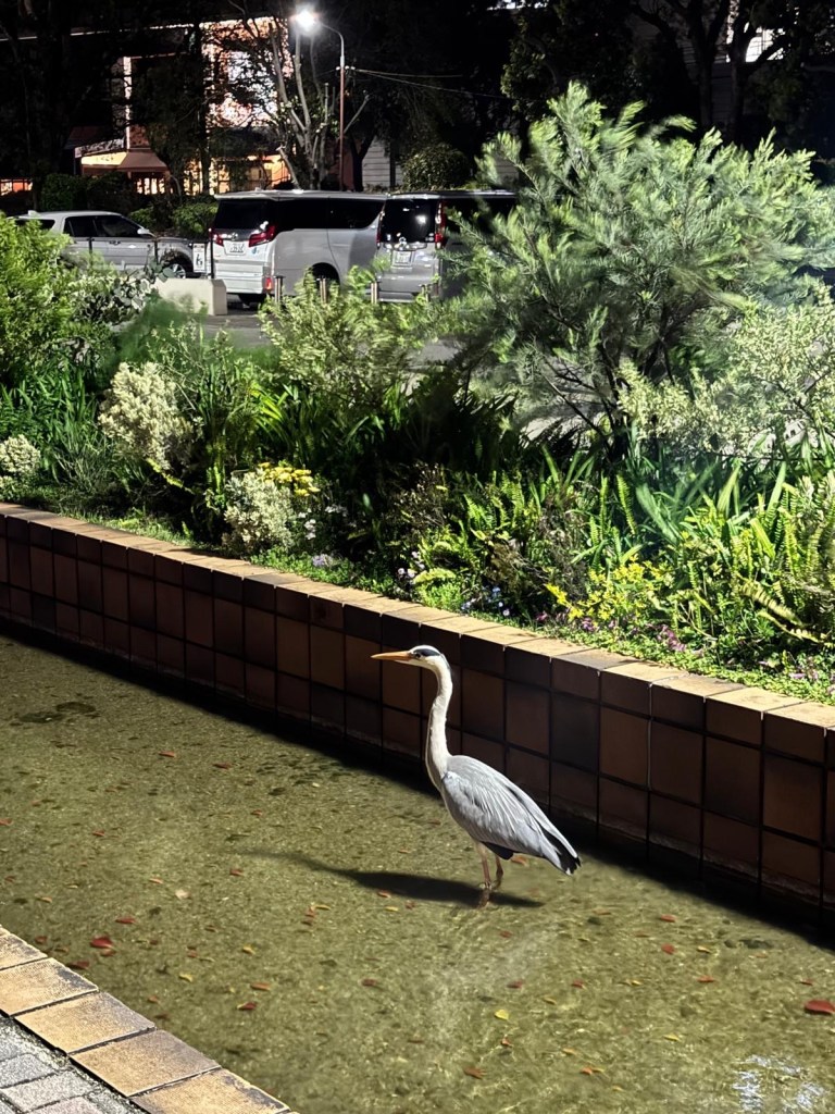 On our walk home we were surprised to see a huge Grey Heron chilling in the stream waiting for his own sushi.