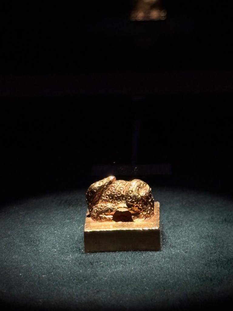 The museum showcased the entire history of civilisation in Fukuoka area from the Stone Age to the present day. There were two main highlights for us, the first one being The Gold Seal (known as Kin-in). The seal was given by Emperor Guangwu of the Chinese Eastern Han Dynasty in 57 AD to a diplomatic envoy from the state of “Na” (today’s Fukuoka). It was discovered by a local farmer who accidentally found the seal in 1784 under a large stone while repairing an irrigation ditch on Shikanoshima Island.