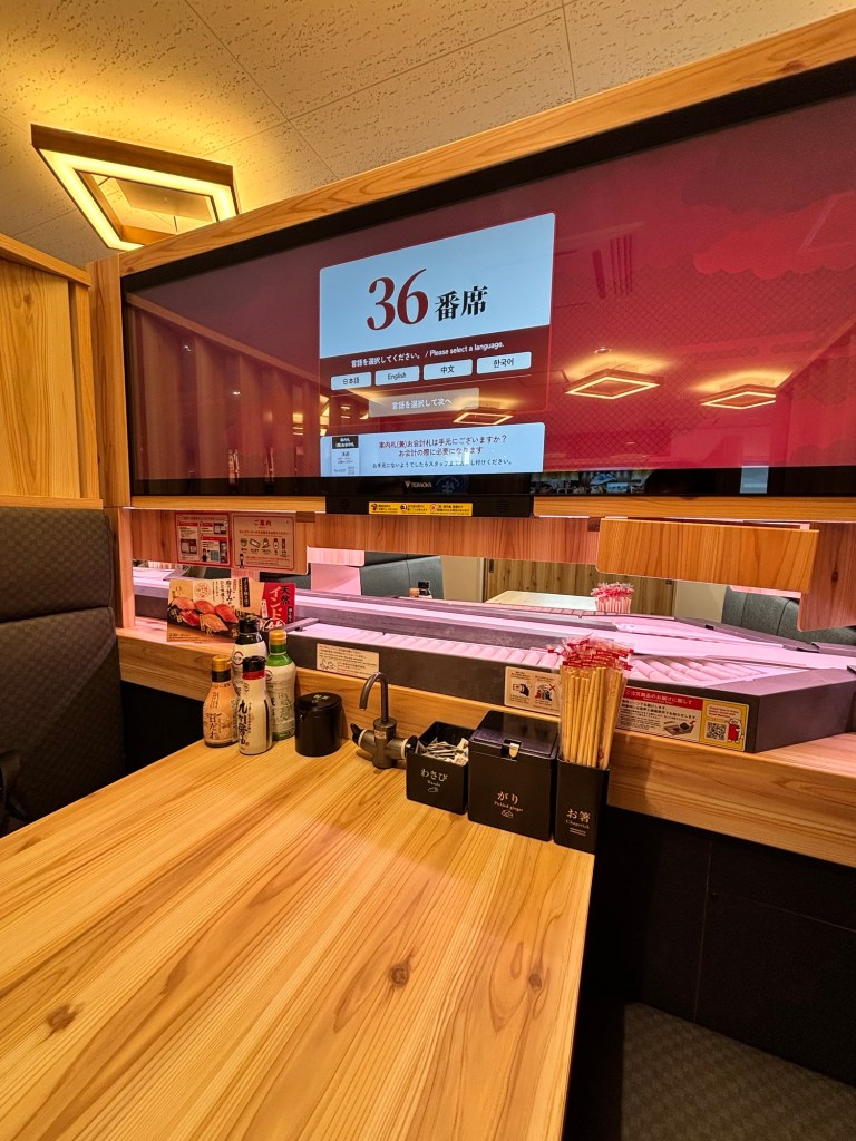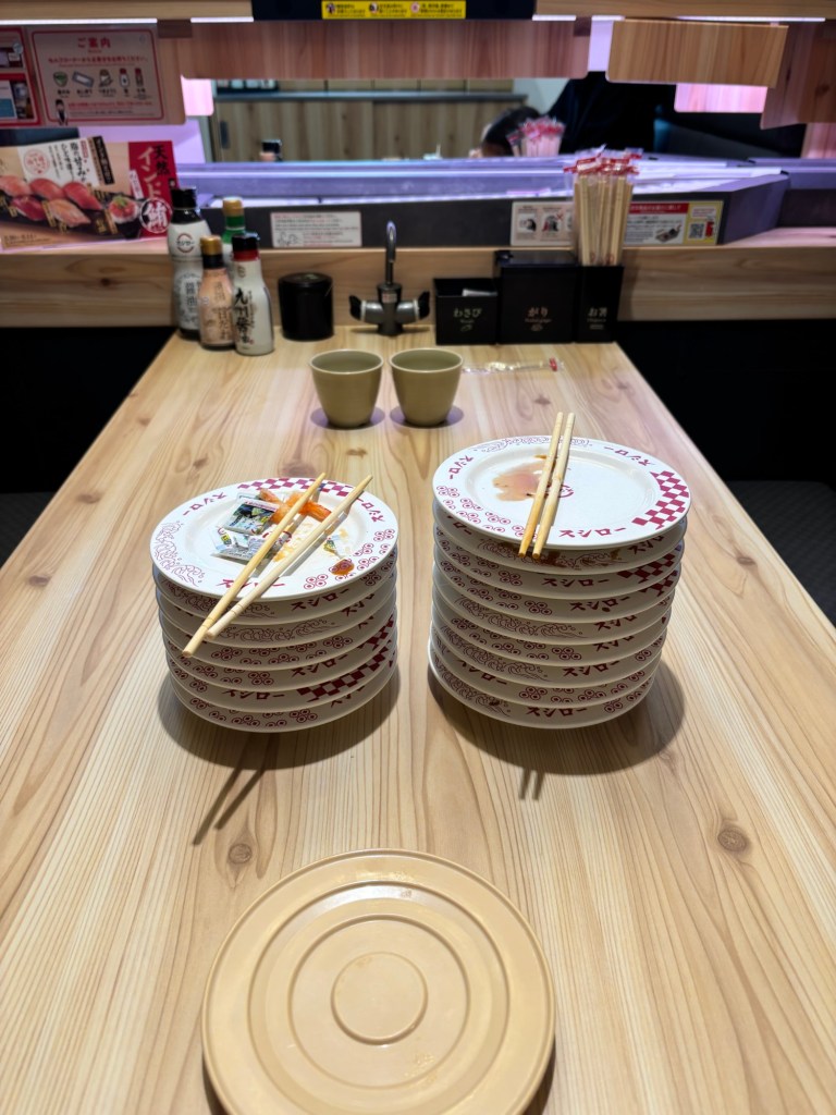 For lunch, we tried our first Japanese sushi conveyer belt restaurant called Sushiro. It is the largest sushi chain in Japan with over 650 locations and it didn’t disappoint.
